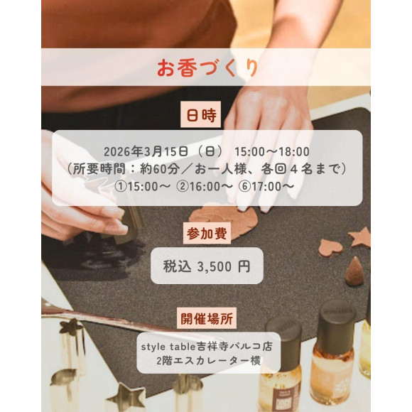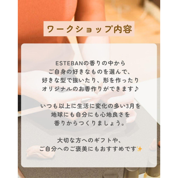 [3/15 (Sun) ESTEBAN × style table Collaboration incense making workshop] style table Kichijoji Parco Store